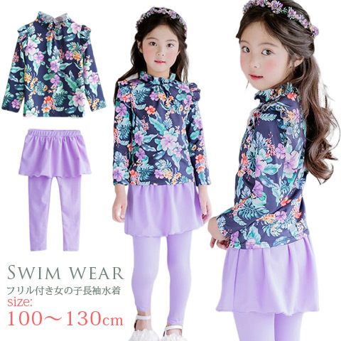 水着 ロングスパッツ スカッツ スカート付き キッズ 水着 女の子 ラッシュガード 水着 ジュニア ガールズ 女子 水遊び プール