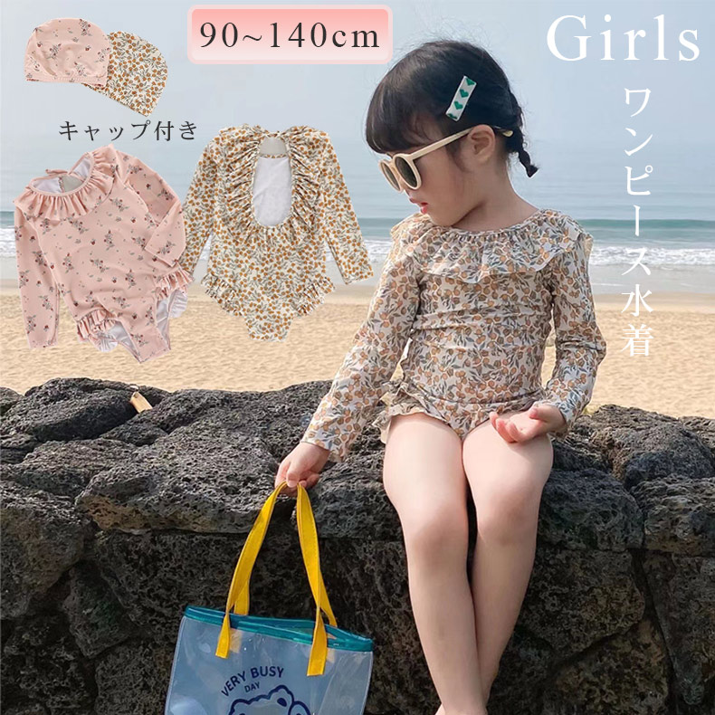 キッズ 水着 女の子 水着 帽子 オールインワン 子ども 子供 動きやすい スイムキャップ 水着 ジュニア 水遊び プール