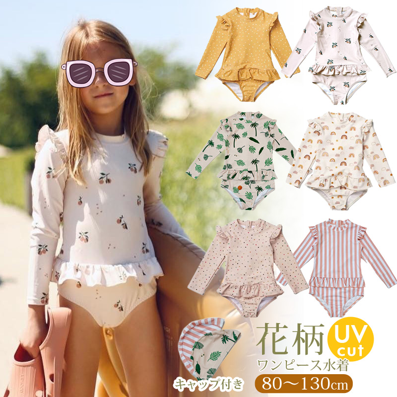 キッズ ベビー 水着 女の子 ワンピース 水着 帽子 オールインワン 子ども 子供 動きやすい スイムキャップ 水着 ジュニア 水遊び プール