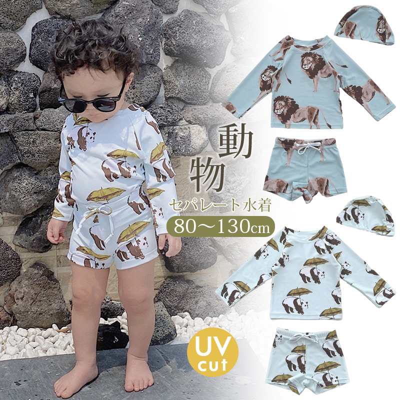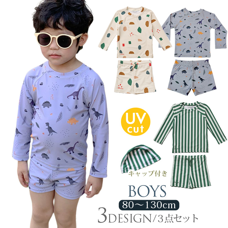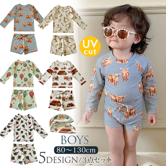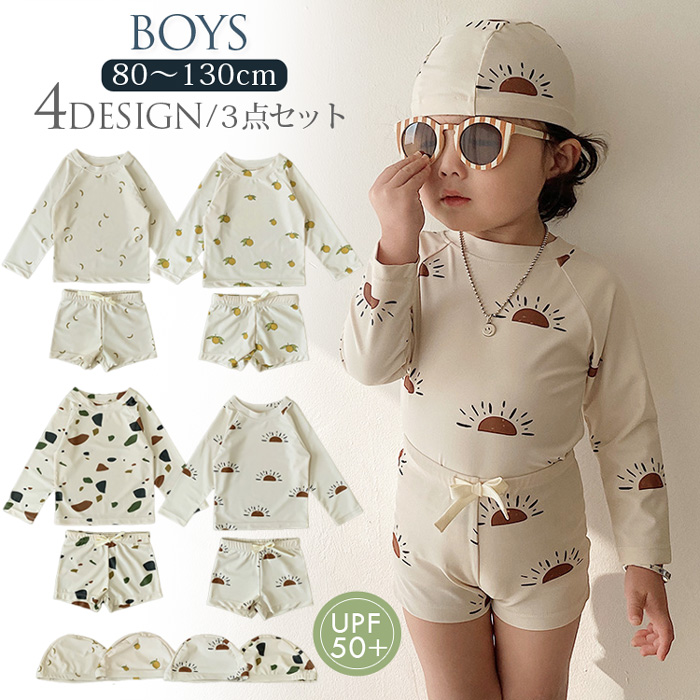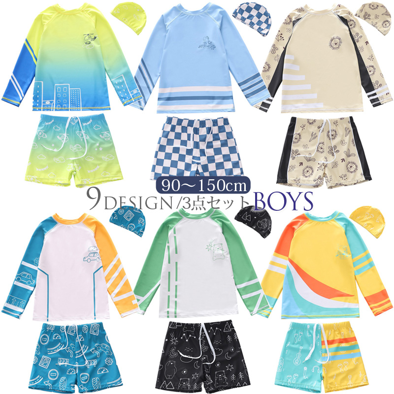 3点セット キッズ ベビー 水着 長袖 ラッシュガード 夏 男の子 セパレート 上下セット 子ども 子供 動きやすい 水着 ジュニア 水遊び プール カット 50+