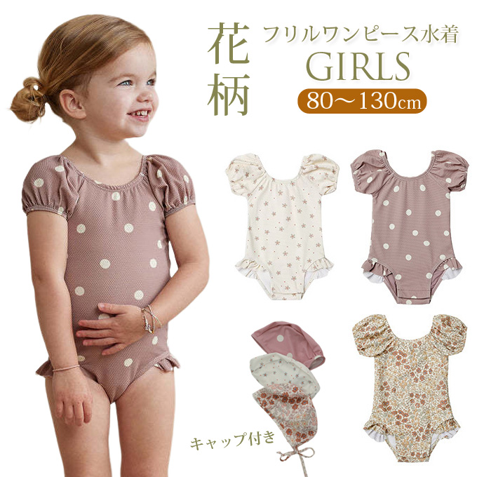 水着 ベビー キッズ 女の子 スイムウェア 子供 ワンピース水着 帽子付き かわいい フリル 子供 キッズ ベビー 女の子 女児 プール 海水浴 スイミング