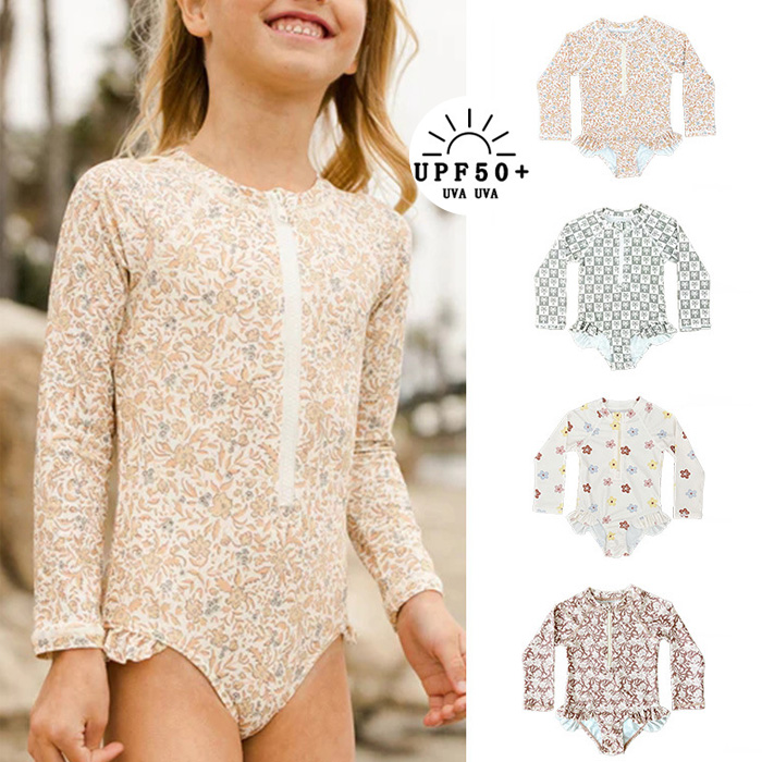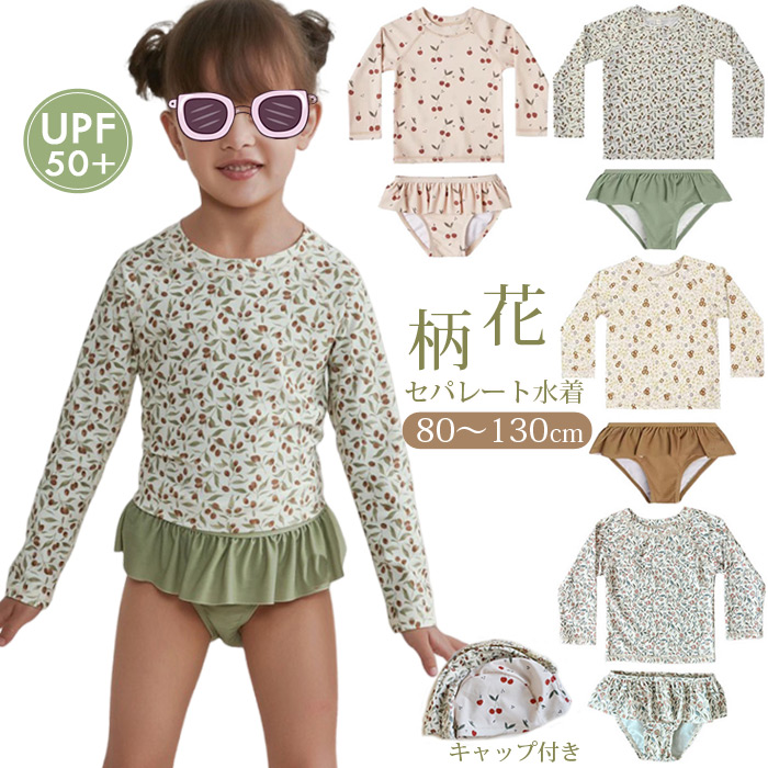 キッズ 水着 女の子 セパレート水着 フリル 花柄 子供 水着 学校 保育園 幼稚園 かわいい フリル水着 キッズ ベビー 服 UPF50+ 紫外線対策女児 プール 海水浴 スイミング