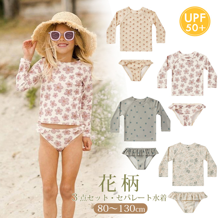 3点セット キッズ ベビー 水着 長袖 ラッシュガード 夏 男の子 セパレート 水着 女の子 上下セット 子ども 子供 動きやすい 水着 ジュニア 水遊び プール カット 50+