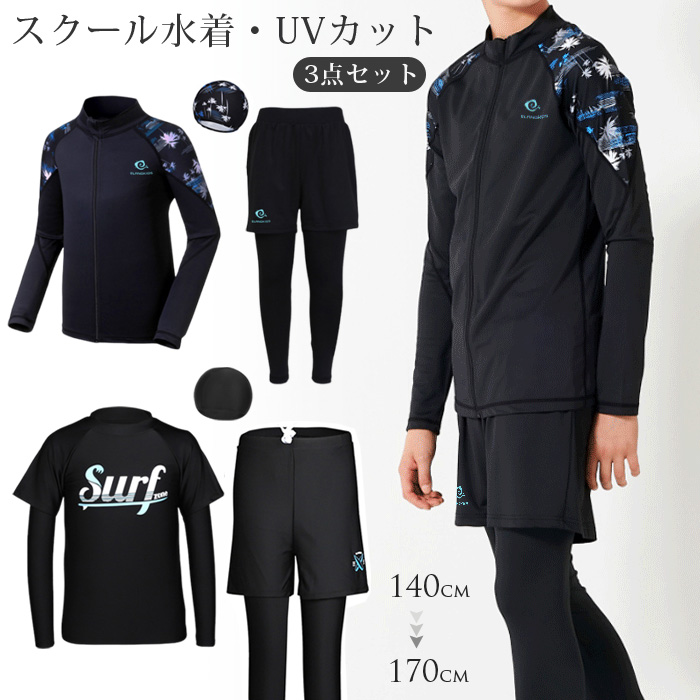 3点セット キッズ 男の子 水着 長袖 ラッシュガード 夏 男の子 セパレート 水着 上下セット 子ども 子供 動きやすい 水着 ジュニア 水遊び プール UVカット