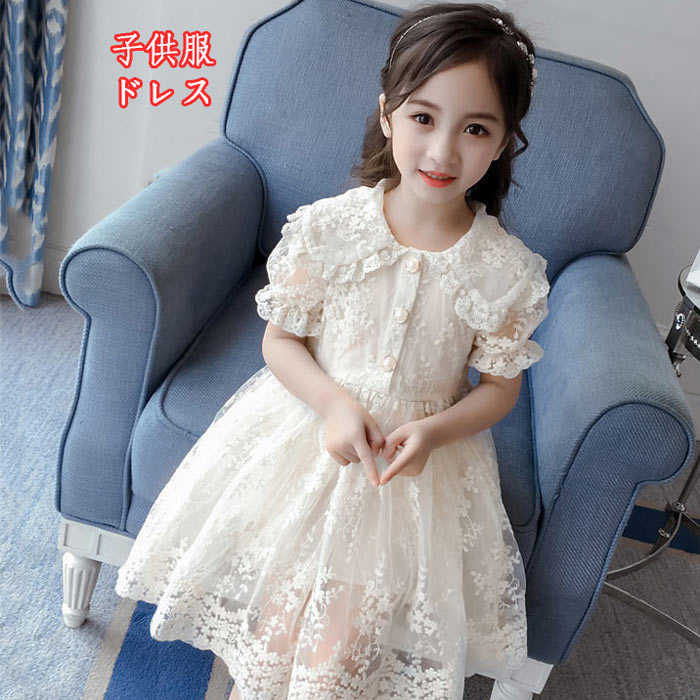 レースワンピース 子供ドレス 女の子 ワンピースフォーマル 子供服 ドレス 演奏会 音楽会 半袖 結婚式90 100 110 120 130