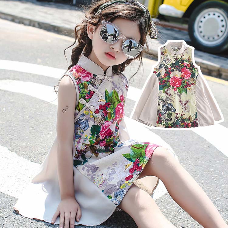 韓国子供服ドレス 女の子 ノースリーブ チャイナドレス プリンセスドレス キッズ 子供 ワンピース フォーマル 発表会 入学式