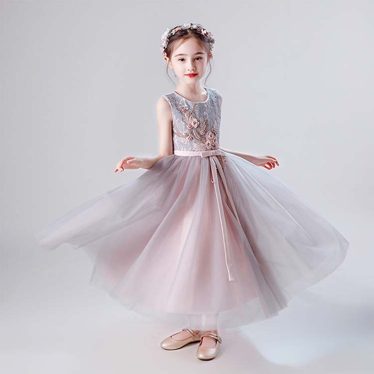 子供ドレス 女の子 チュール 刺繍 ピアノ フォーマル 子ども ロングドレス キッズ ワンピース お姫様 プリンセスドレス 結婚式 発表会 レースドレス ワンピース 子供 ドレス 七五三 ジュニア c