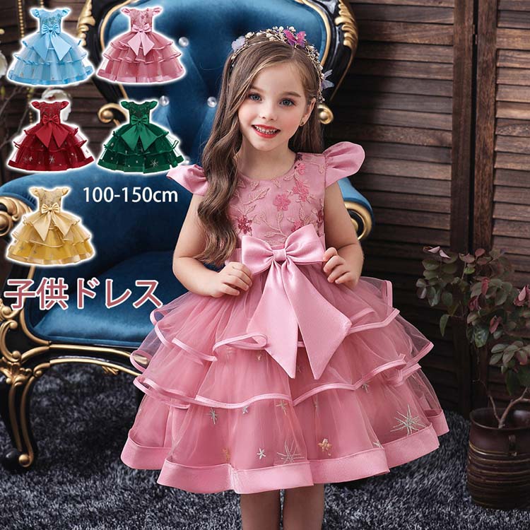 子供ドレス 女の子 ピアノ 発表会 全6カラー 子ども 誕生日会 ショートドレス キッズ ワンピース お姫様 プリンセスドレス 結婚式 七五三 チュチュ レースドレス ワンピース 子供 ドレス フォー