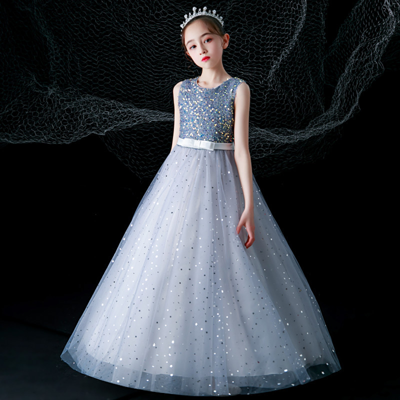 子供ドレス ロングワンピース フォーマルドレス 結婚式ワンピース パーティードレス キッズ ピアノ発表会 結婚式 発表会女の子 結婚式 チュール キラキラ キレイめ 音楽会 演奏会 ホワイト グレー