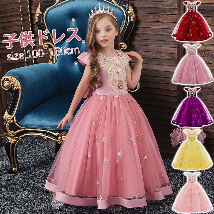 子供ドレス ドレス 女の子 子供ドレス ピアノ発表会 120 ロング フォーマル ピアノ発表会 キッズ ジュニアドレス 子供服 チュール ワンピース 花嫁 七五三 結婚式