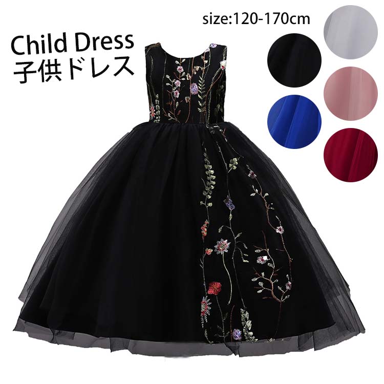 フォーマルドレス 結婚式 ミセス ジュニアドレス 150 160 170 袖なし ノースリーブ 花 刺繍 子供 ドレス 発表会 ロング 5 ドレス 子供 ピアノ 発表会 コンクール