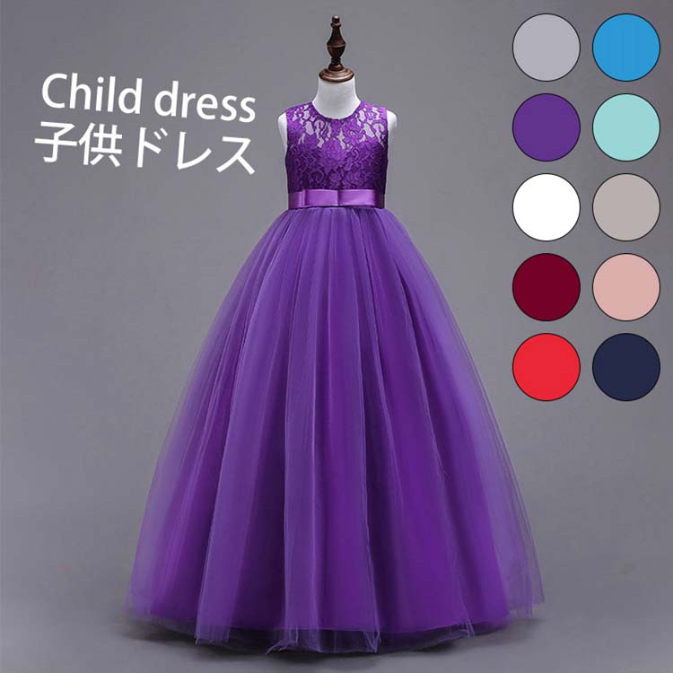 子供 ドレス 発表会 ロング 花 飾り 無地 チュール ワンピース 夏 きれいめ チュールスカート キッズ ジュニア ジュニアドレス 150 10色選べる 児童 乳児 幼稚園 入学
