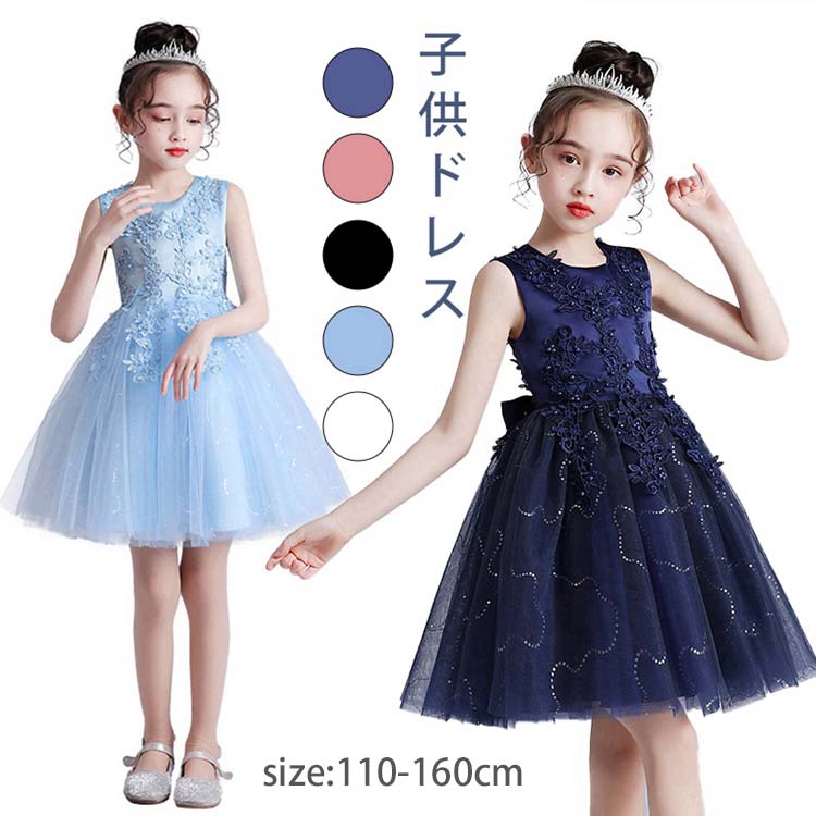 ドレス 子供 ピアノ 発表会 コンクール ピアノ 袖なし ノースリーブ ワンピース 夏 レディース きれいめ 花柄 刺繍 バックファスナー チュール フォーマル ワンピース 女の子
