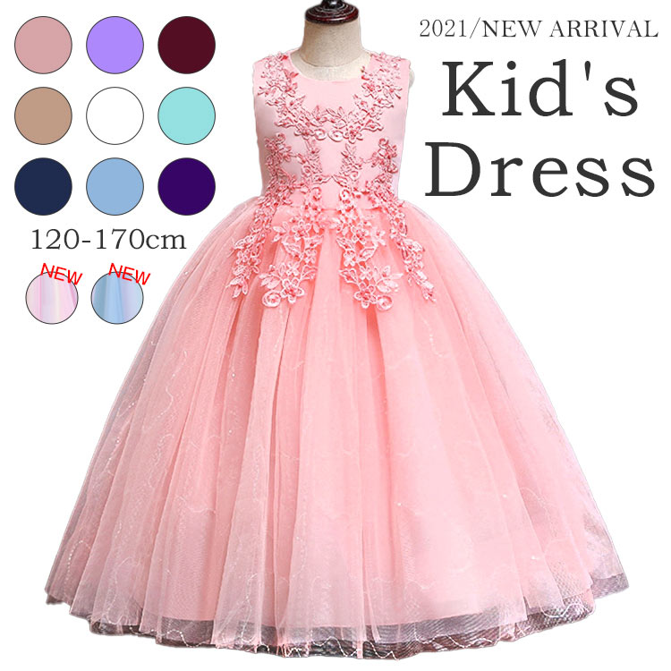 フォーマルドレス 結婚式 ミセス ジュニアドレス 150 160 170 袖なし ノースリーブ 花 刺繍 子供 ドレス 発表会 ロング 5colors ドレス 子供 ピアノ 発表会 コンクール