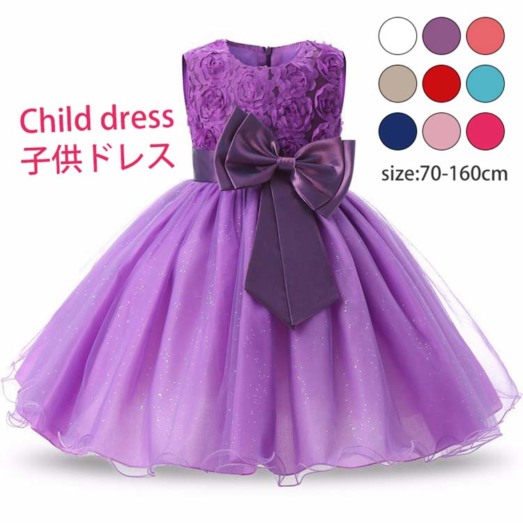 ドレス 子供ドレス ピアノ発表会 ピアノドレス ウエディングドレス 女の子 おしゃれ ピンク ブルー パープル エロー