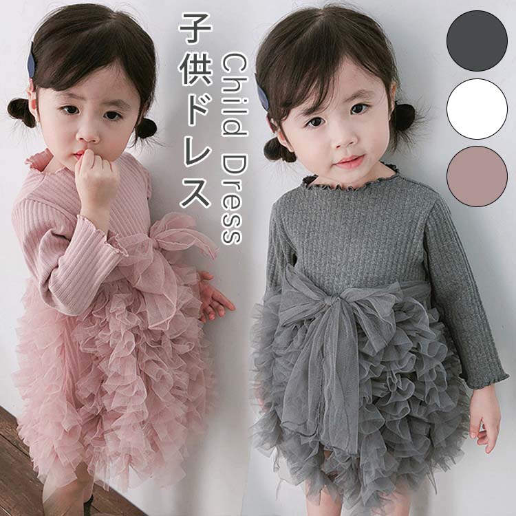 ベビードレス ベビー服 子供 ドレス 長袖 ひざ丈 オシャレ ワンピース 春夏秋冬 きれいめ チュールスカート フリル チュール ワンピース デザイン感 新生児 プレゼント