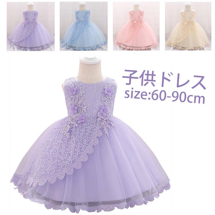 チュールスカート キッズ チュール ワンピース 夏 きれいめ 新生児 乳児 幼児 花柄 刺繍 花飾り 60 70 80 90cm ベビードレス 4colors 子供 ドレス 発表会 保育園 幼稚園