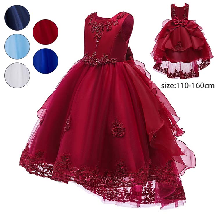 送料无料 子供ドレス ドレス 子供 120 130 140 女の子 ピアノ発表会 フォーマル ガールズ キッズ ジュニアドレス 刺繍 ロングドレス 花柄 演奏会 入学式 七五三 結婚式