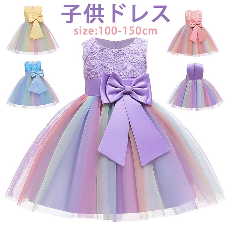 ロングドレス 演奏会 ジュニア ピアノ 発表会 大きいサイズ 白 子供ドレス カラフル 虹色 花柄 花飾り 個性的 可愛い ユニーク フォーマルドレス 結婚式 ドレス 子供 ピアノ