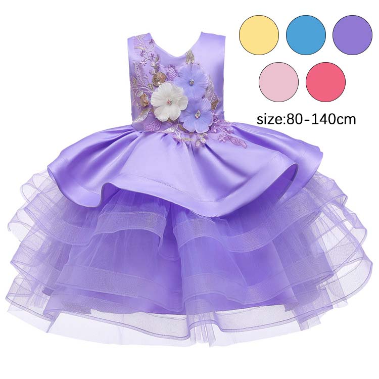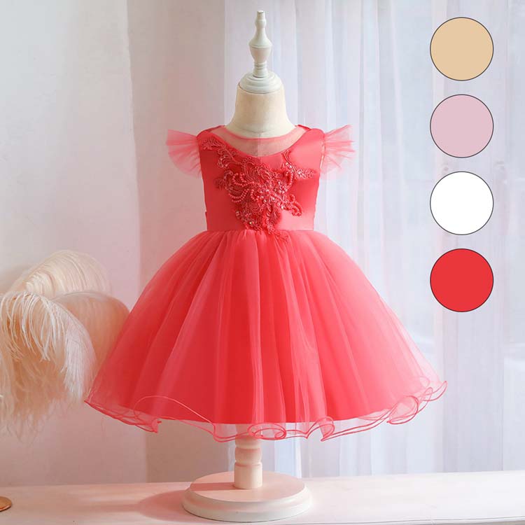 子供ドレス 女の子 子供 ドレス ミディアム 袖なし ワンピース フォーマル 夏 普段着 発表会 チュールスカート 花 刺繍 チュール ワンピース キッズ ひざ丈 ラワーガール