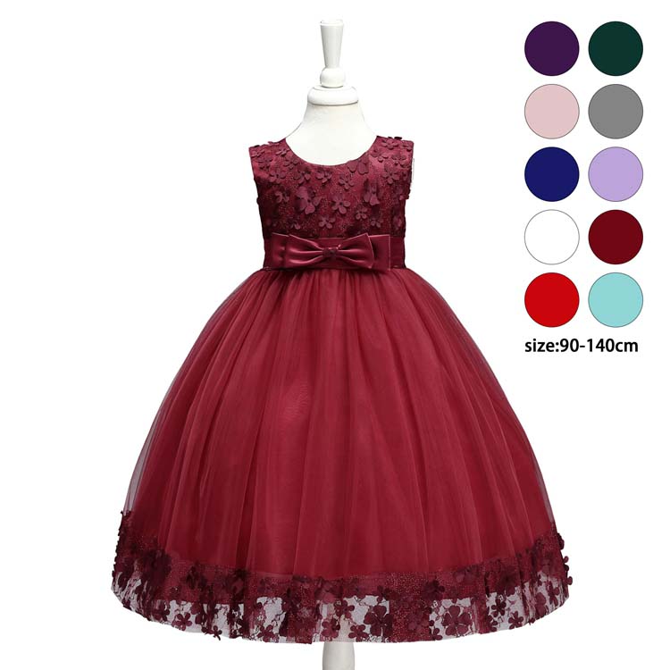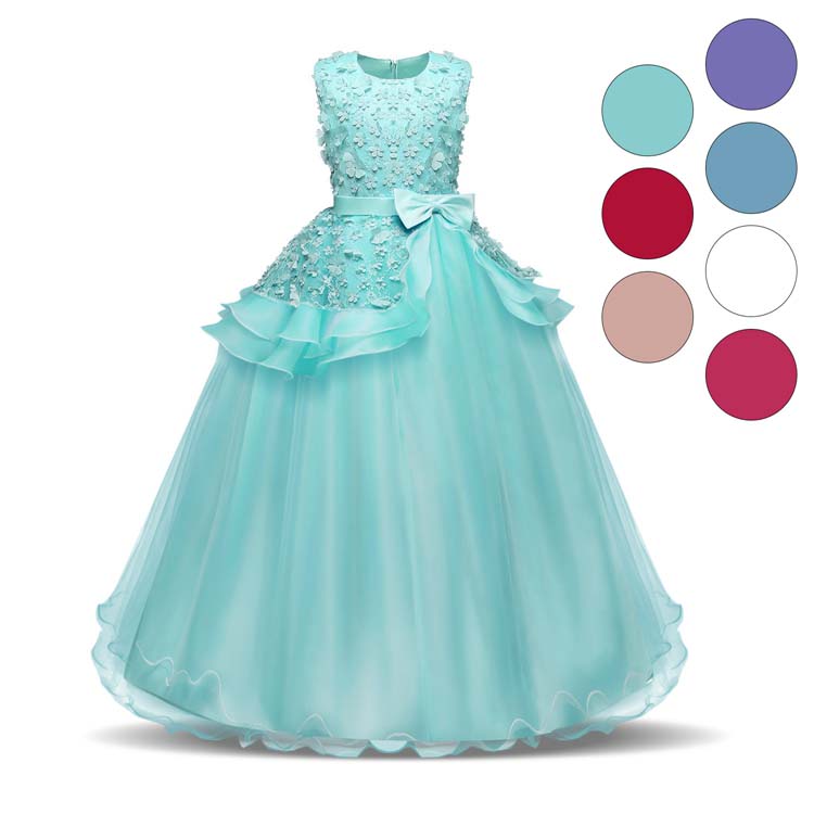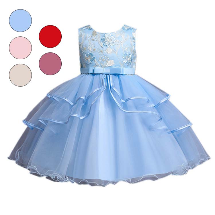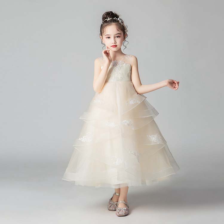 子供 ドレス 子供ドレス ピアノ 発表会 ワンピース 女の子 ノースリーブ チュールスカート キッズ ロング 姫 チュール ワンピース 袖なし 花柄 刺繍 リボン デザイン感