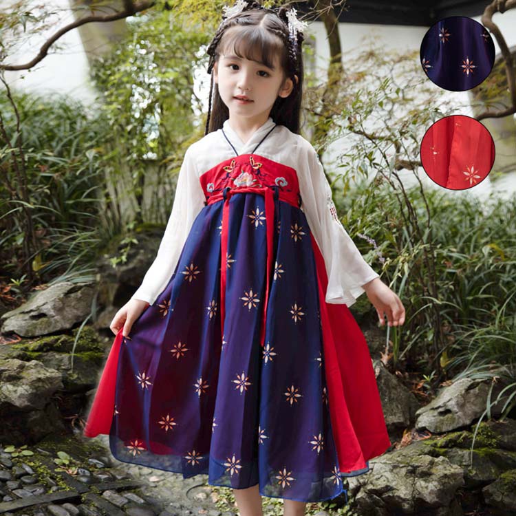 漢服 ジュニアドレス 子供 ドレス 子供ドレス 発表会 ワンピース 長袖 ロング きれいめ 女の子 チャイナ風 ビンテージ 古風 女の子 かわいい 春秋 バックファスナー 総柄