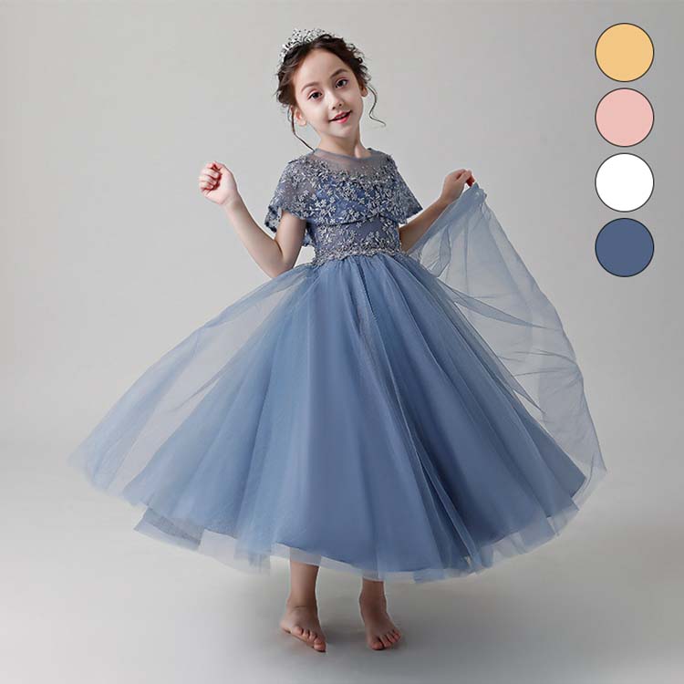 子供ドレス 子供 ドレス 発表会 ワンピース 女の子 チュールスカート キッズ ロング 姫 フラワーガール チュール ワンピース 半袖 総柄 刺繍 優雅 ファッション 結婚式