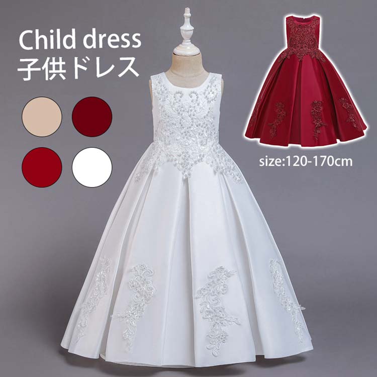 子供ドレス ロングドレス 発表会 Aライン ワンピース ノースリーブ 花柄 刺繍 優雅 派手 子供 ドレス 袖なし フォーマル ジュニアドレス 宮廷風 姫系 お姫様気分 司会