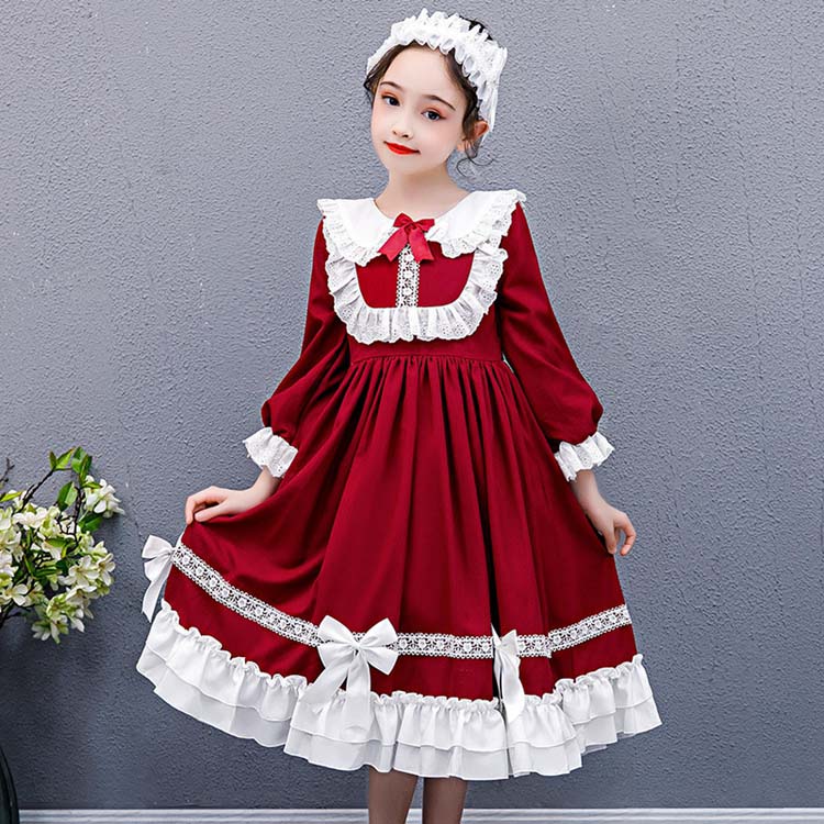 子供 ドレス 子供ドレス ロリータ ジュニア ワンピース 長袖 フリル リボン デザイン感 ハロウィン 普段着 私服 ロリータファッション 可愛い 萌 赤 ドレス ヘア飾り