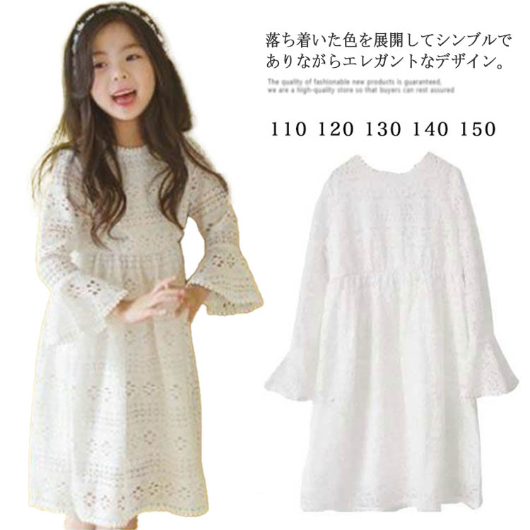 レースワンピース 子供ドレス 韓国子供服 春秋 長袖 女の子 総レースドレス ロング丈 ワンピース コットン リゾート おしゃれ 子ども服 キッズ 女児 シンプル ビーチ 入学式 パーティ