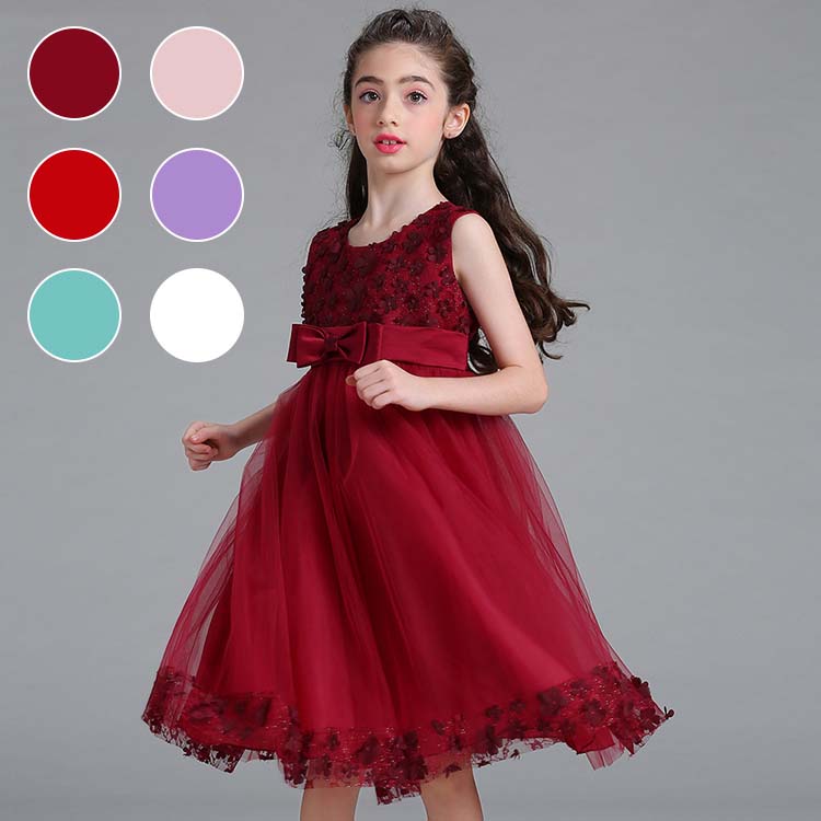 ピアノ発表会 ドレス 子供 フォーマル キッズドレス 女の子 ジュニアドレス パーティー レース フォーマルドレス フラワーガール 赤 青 白 ピンク 緑 黄 ネービー 膝丈