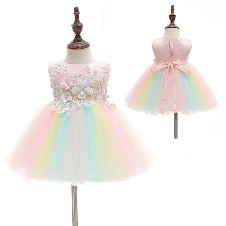 ベビー服 カラードレス セレモニー ベビーウェア 赤ちゃん ドレス お宮参り 記念日 お披露目 ベビー 新生児 虹色 カラードレス