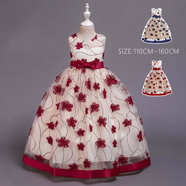 子供ドレス 子どもドレス フォーマル 七五三 ロングドレス 花柄 ジュニアドレス フォーマル 結婚式 刺繍 発表会 ロングドレス