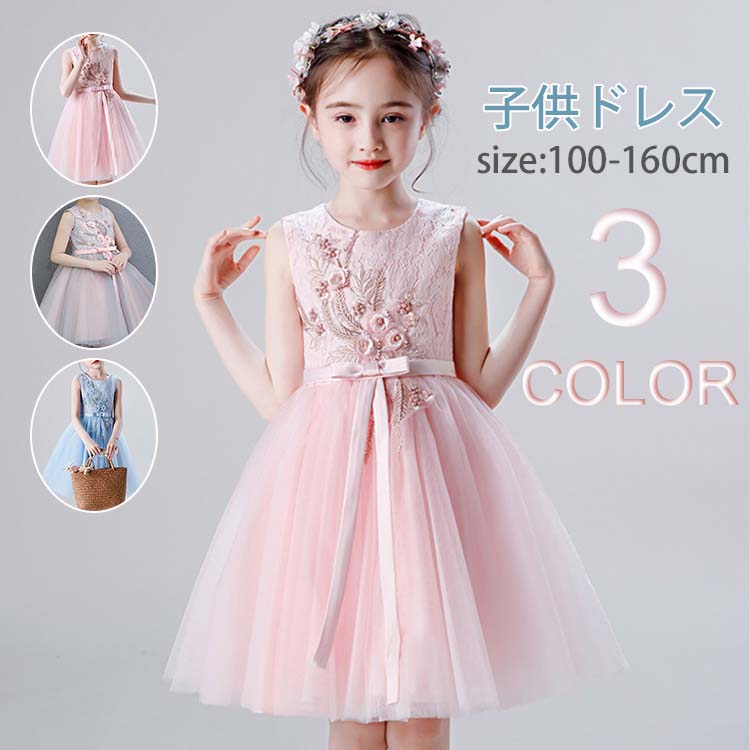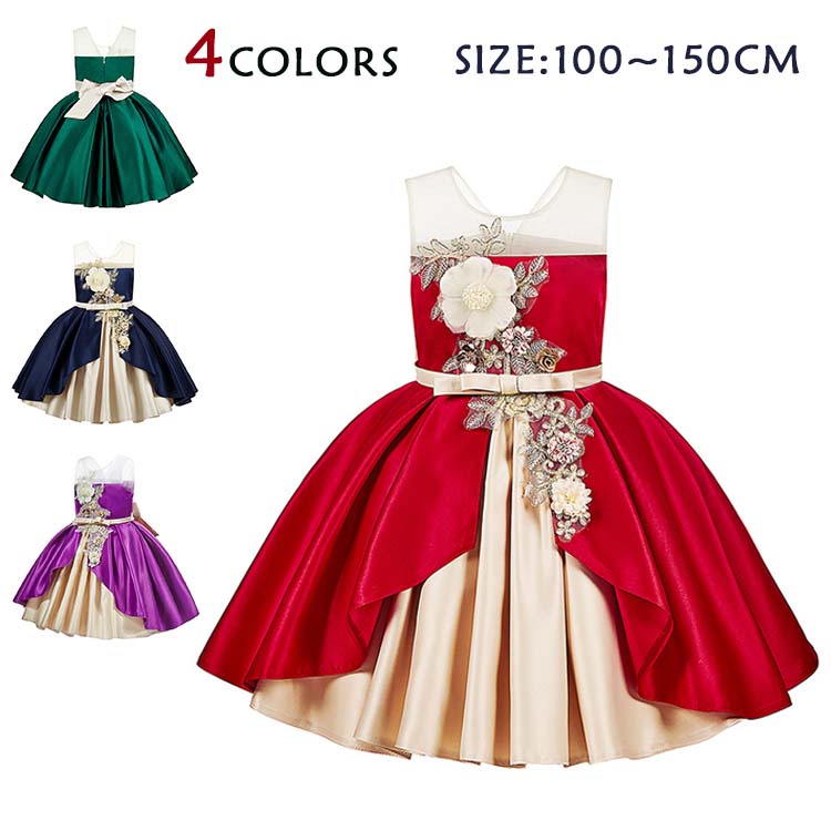 ピアノ発表会 ドレス 花タップリ パーティードレス 子供 ワンピース 子供 ドレス ノースリーブ ドレス キッズ ドレス 結婚式 発表会 入園式 七五三 ドレス