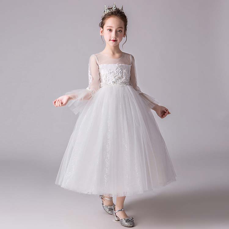 子供ドレス ドレス 140 ピアノ発表会 ロングドレス キッズ 子どもドレス ロングドレス ジュニアドレス 白 刺繍柄 七五三 袖付き パーティードレス 結婚式 音楽会 子供 ドレス ワンピース