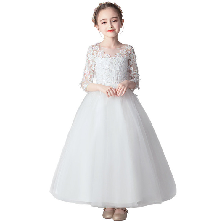 ホワイト 110-150 マキシ丈、ロング丈ロングドレススカートノースリーブ 袖なし キッズドレス子供ドレス ワンピース子供ワンピースワンピ女の子ジュニアピアノ発表会パーティー七五三卒業式入園式春