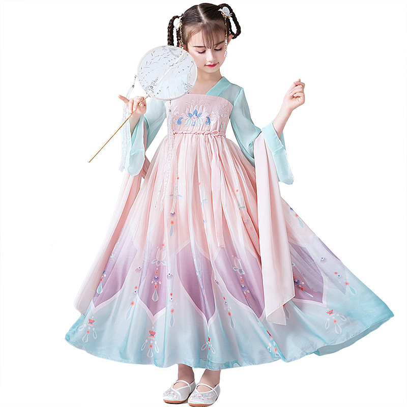 ぐりん+ピンク ワンピース 子供服 女の子 唐装漢服 キッズ 舞台演出団体服 中国古代美人服 中華風 長袖 ロング丈ワンピース ロングワンピース チャイナドレスエレガント 民族風 コスプレウェア イベ