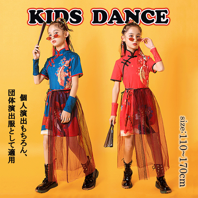 キッズダンス衣装 チャイナ風 ダンスウエア 舞台 子供服 ランウェイウォーク 派手な服 社交ダンス衣装 ダンスチーム