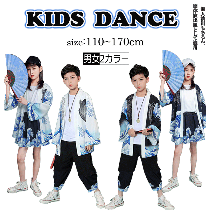 浮世絵柄ダンス衣装 和風キッズダンス 衣装 キッズ ダンス衣装 上下セット浮世絵 ダンスウエア 子供服 体操服 派手な服 社交ダンス衣装 ダンスチーム