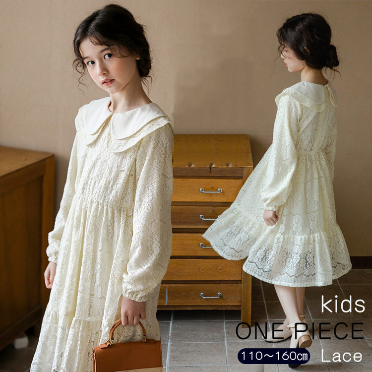 お上品見えフォーマルワンピース 子供ドレス フラワーガール ガールズ 総レースレスキッズ 発表会 結婚式