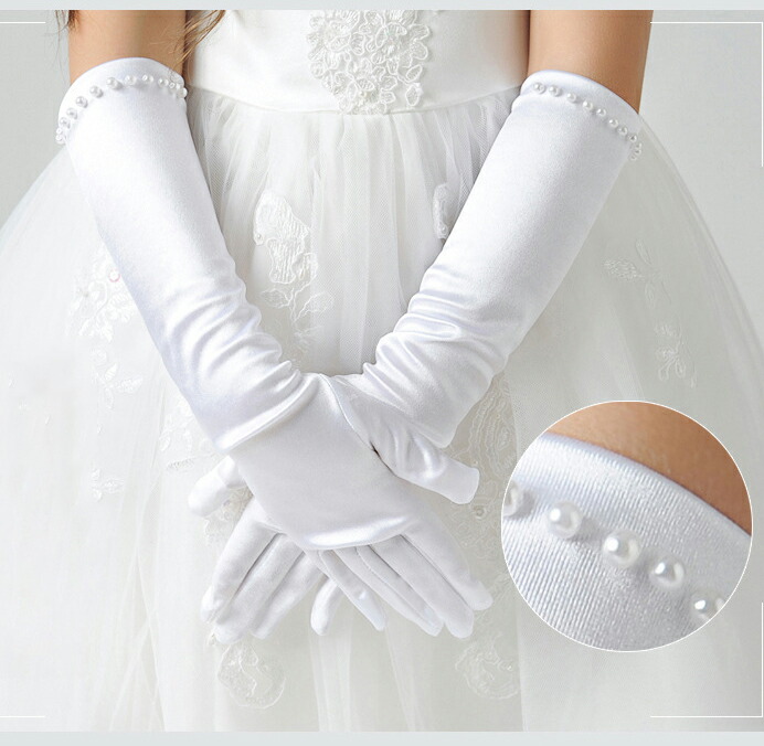 女の子ロンググローブ パール手袋 ホワイト子供 フォーマル フォーマル手袋 人気 ブライダル キッズ 結婚式用 撮影 白 ウェディング 発表会 演奏会 c-shoutao-6784-gg