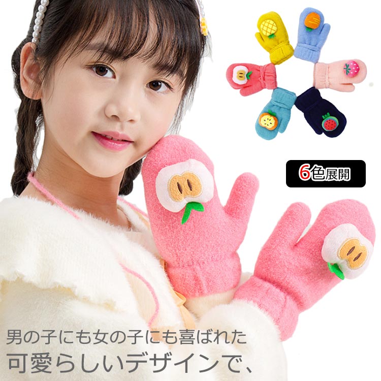 子供用ミトン 手袋 防寒 キッズ 可愛い 果物 防寒手袋 紐付き 厚手 裏起毛 暖かい 保温 防風 女の子 男の子 子供 幼稚園 アウトドア 通園 通学 旅行 プレゼント