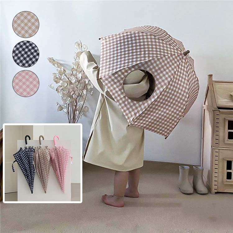 子供傘 キッズ 可愛い 傘 女の子 男の子 かわいい 晴雨兼用傘 子供用 チェック柄 雨傘 日傘 透明傘 おしゃれ 日よけ 小学生 小学校 中学校 通学 3color 学生 学校 プレゼント