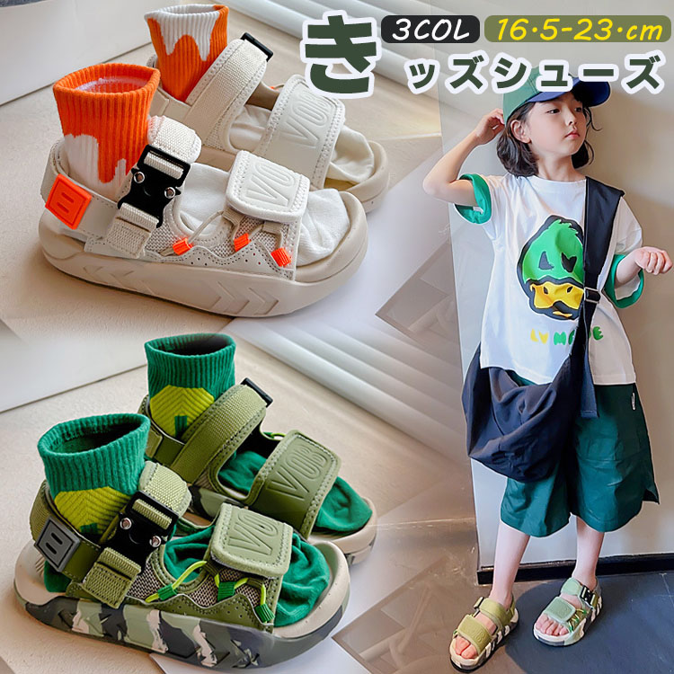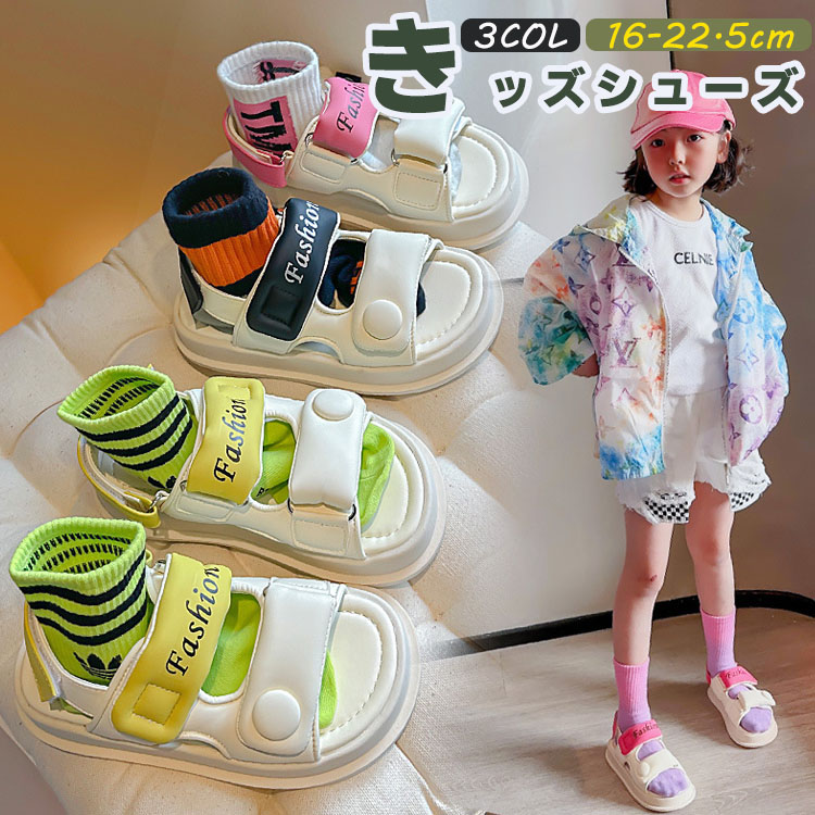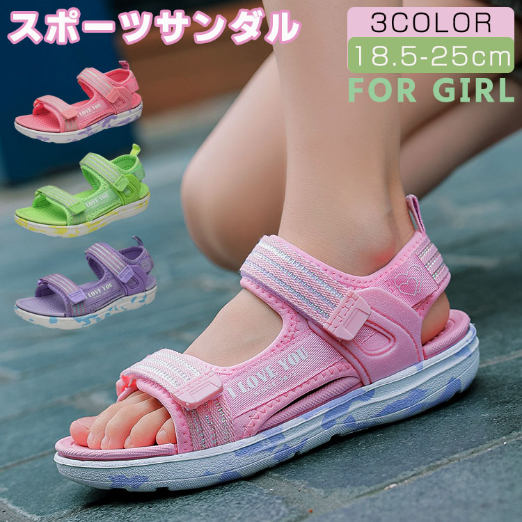オシャレと実用性を兼備したスポーツサンダル 夏に似合う色 履き脱げ易いマジックテープ 18.5cm 19cm 20cm 22cm 23cm 24cm 25cm
