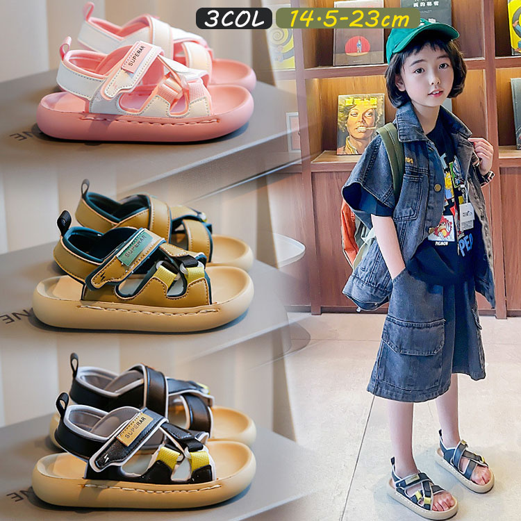 オシャレと実用性を兼備したスポーツサンダル 夏に似合う色 履き脱げ易いマジックテープキッズ ベビー マタニティ ベビーファッション 靴 サンダル