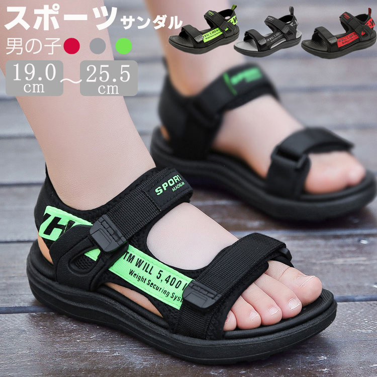 オシャレと実用性を兼備したスポーツサンダル 夏に似合う色 履き脱げ易いマジックテープ ブルー ブラック レッド プレゼント 18.5 19 20 22 23 24 25