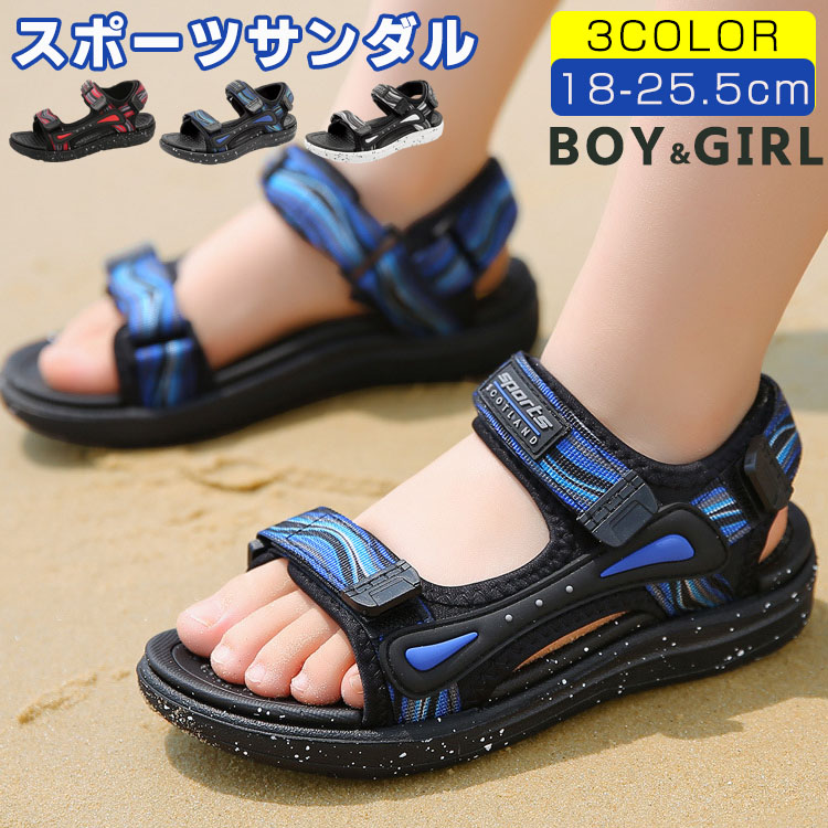 オシャレと実用性を兼備したスポーツサンダル 夏に似合う色 履き脱げ易いマジックテープ ブルー ブラック レッド プレゼント 18.5cm 19cm 20cm 22cm 23cm 24cm 25cm