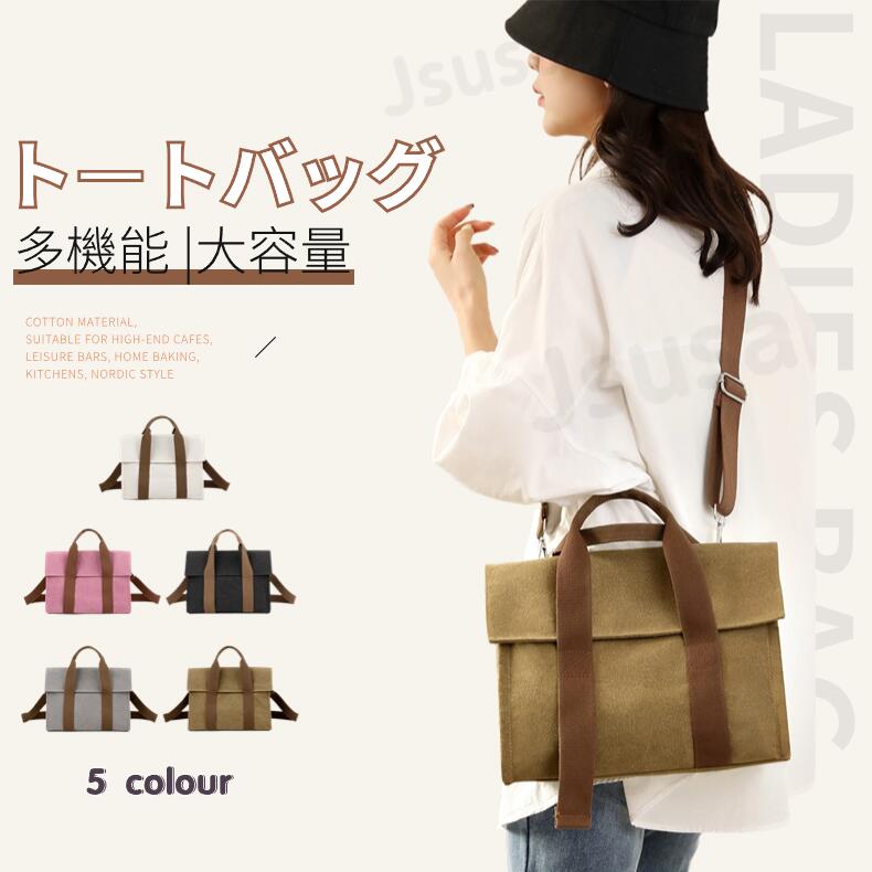 2wayトートバッグ レディース バッグ 厚手 キャンバス a4 斜めがけ バッグ シンプル おしゃれ ポケット たくさん 通勤バッグ 持ち運び 自立する 旅行 仕事用 キャンバストートバッグ かわい