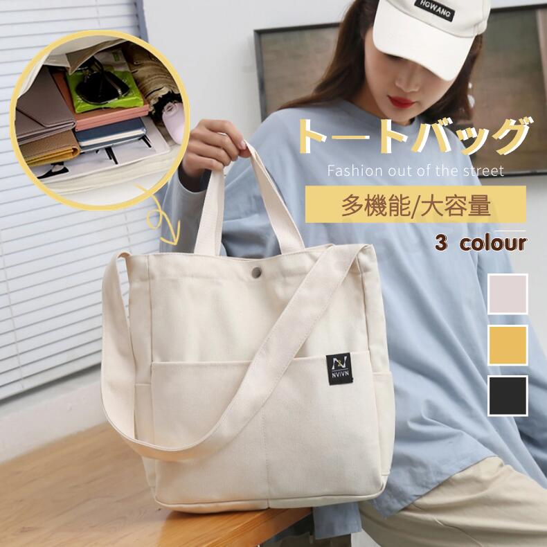 トートバッグ レディース バッグ 厚手 2way キャンバス a4 ファスナー付き バッグ シンプル おしゃれ 大容量 通勤バッグ 持ち運び 通学 手提げ 肩掛け 仕事用 斜め掛け ショルダーバッグ
