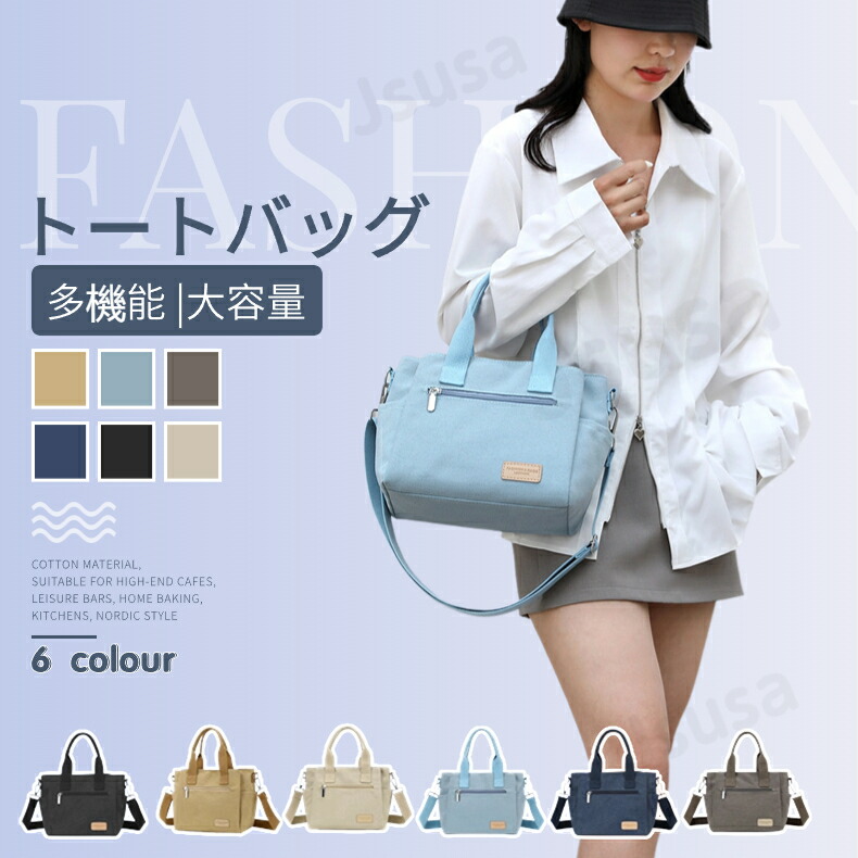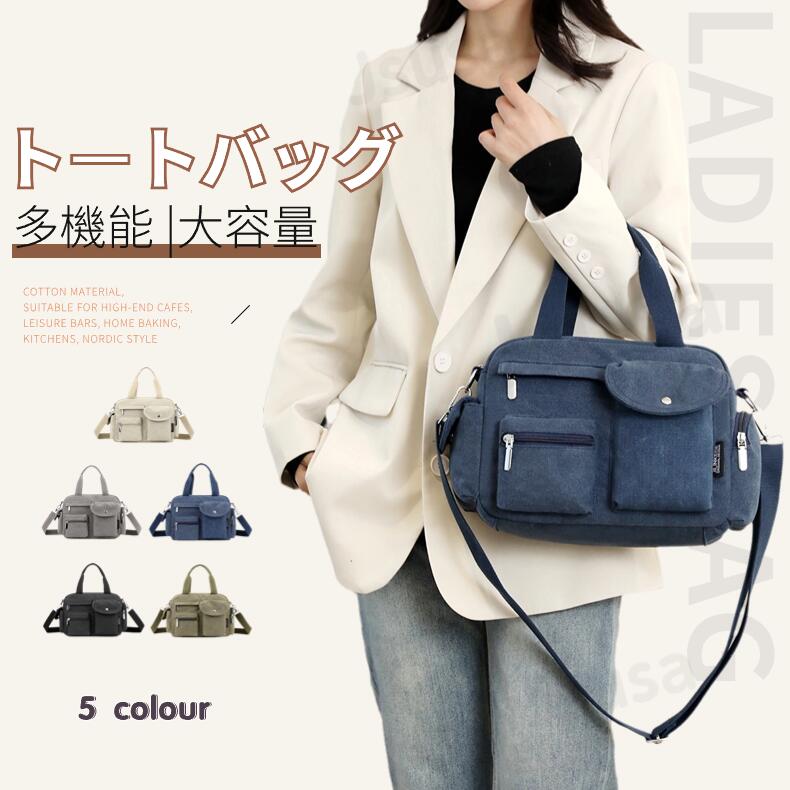 2トートバッグ レディース バッグ 厚手 キャンバス 4 斜めがけ バッグ シンプル おしゃれ ポケット たくさん 通勤バッグ 持ち運び 自立する 旅行 仕事用 キャンバストートバッグ かわい
